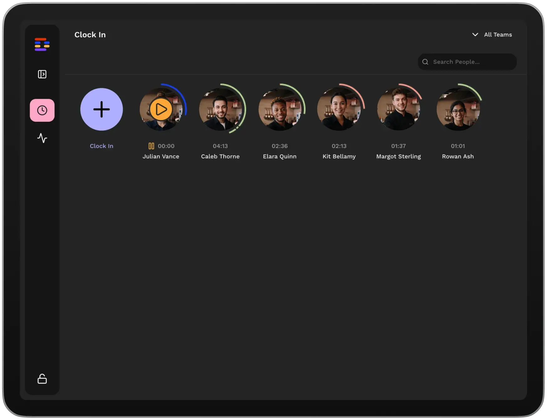 No. The Time Clock app is designed for shared devices such as tablets, so the whole team can clock in and out from one place.